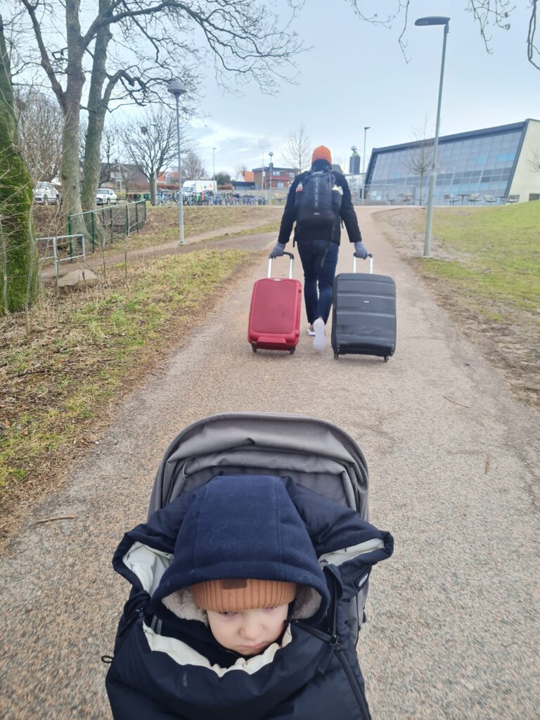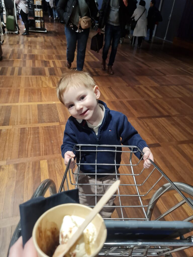 Tre dagar innan avfärd och Vidar vaknar med feber, igen. Januari innebar väldigt många sjukdagar för hans del så det borde egentligen varit ganska väntat. Vidar började klaga på ont i munnen och vi började bli allt mer oroliga. På söndagen, dagen innan resan, fick vi en akut tandläkartid för att konstatera att det inte var någon fara. Febern avtog och gissa om vi var glada när han vaknade feberfri på måndagen. Efter en rush till tåget, ”vi har gott om tid..”- Andreas, var vi på gång. Häng i loungen, flygplansspaning och lite lek på nya lekplatsen hann vi med. Plötsligt ville Vidar ha glass. Då han inte ätit speciellt mycket de senaste dagarna eftersom han haft ont i munnen blev vi så glada att han ville ha något. Efter att ha letat i alla affärer och restauranger hittade vi ett ställe som hade glass. Det gick bara att köpa tre kullor och de kostade 190 kronor. Vidar åt två tuggor av den och var sedan nöjd…