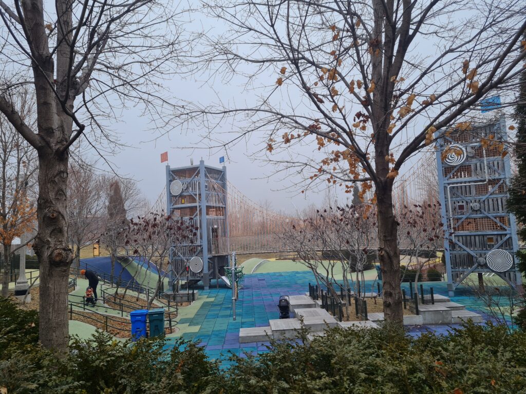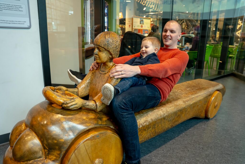 Nästa stopp blev lekplatsen i Maggie Dalay Park. En av de största i Chicago. Vi hade den för oss själva och Vidar döpte sin favoritrutschkana till ”Vidar rutschkanan”. Lekplatsen blev en favorit och vi fick anledning att återkomma flera gånger under våra dagar i Chicago.