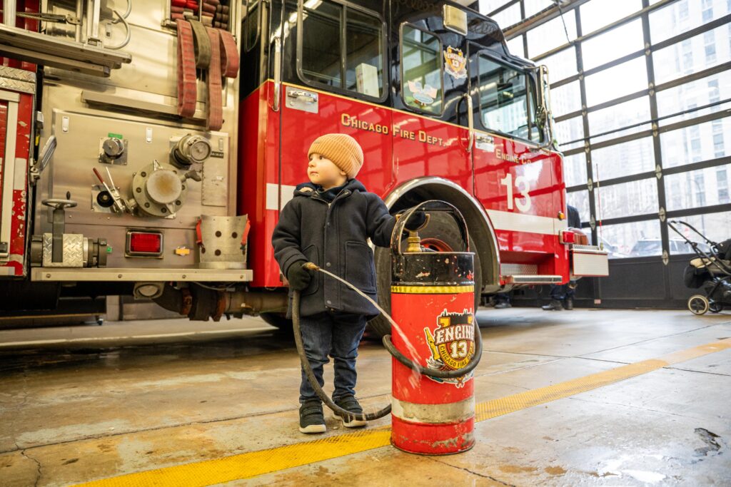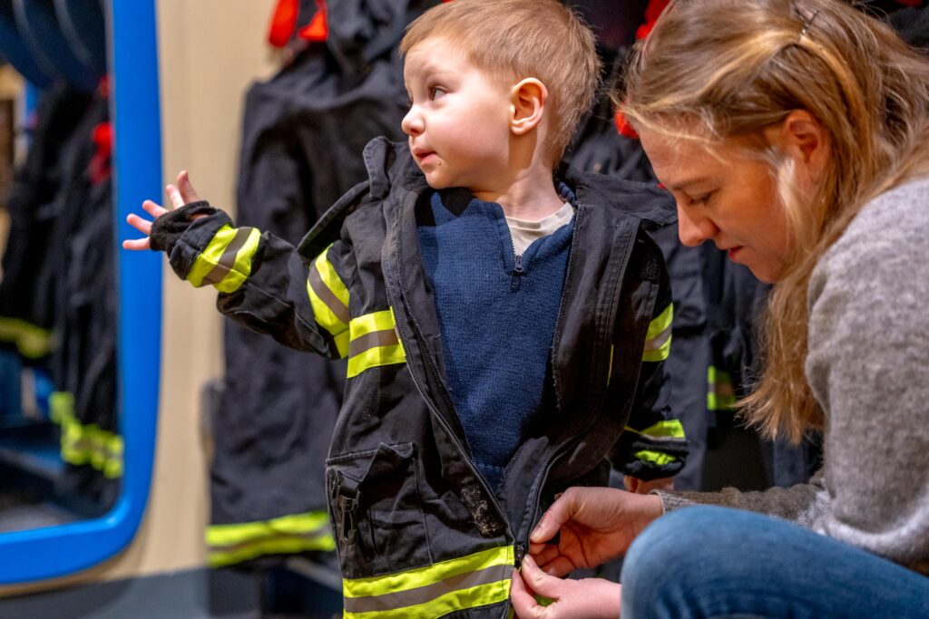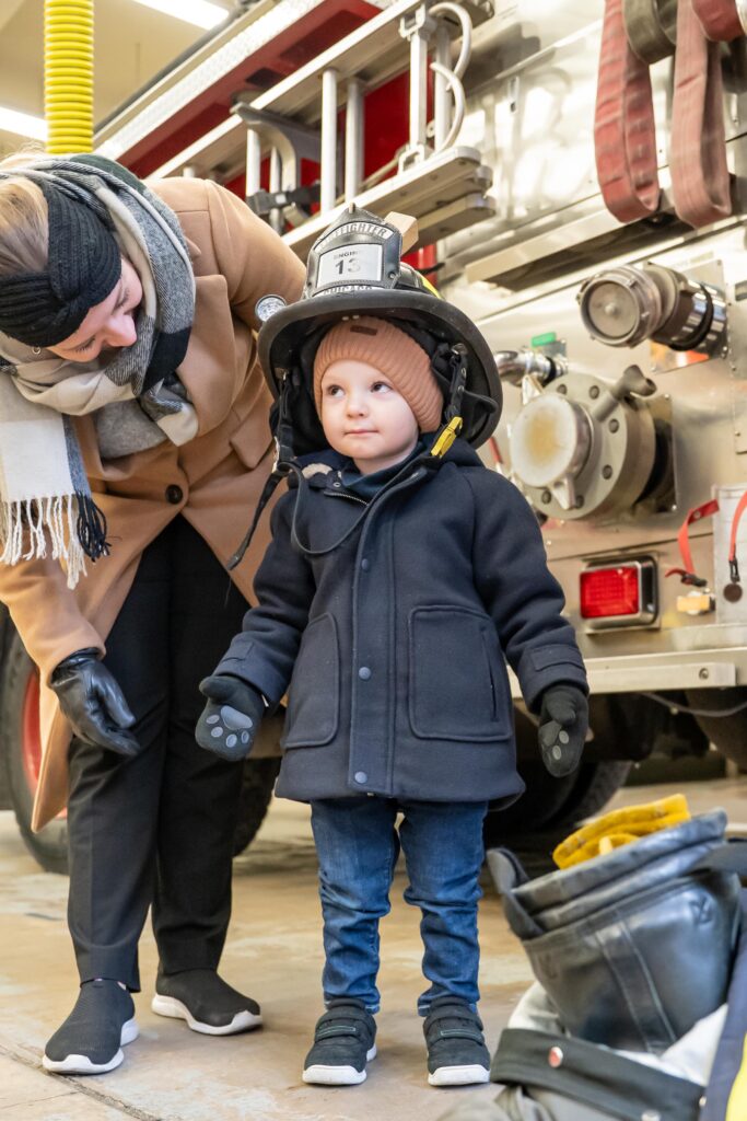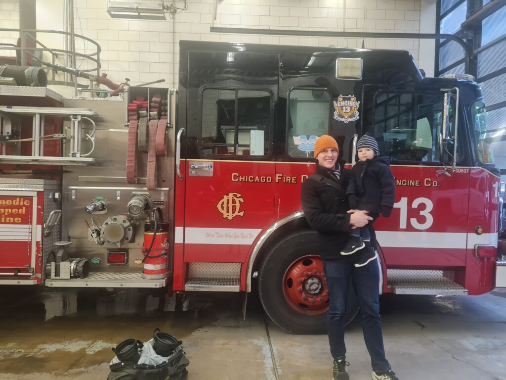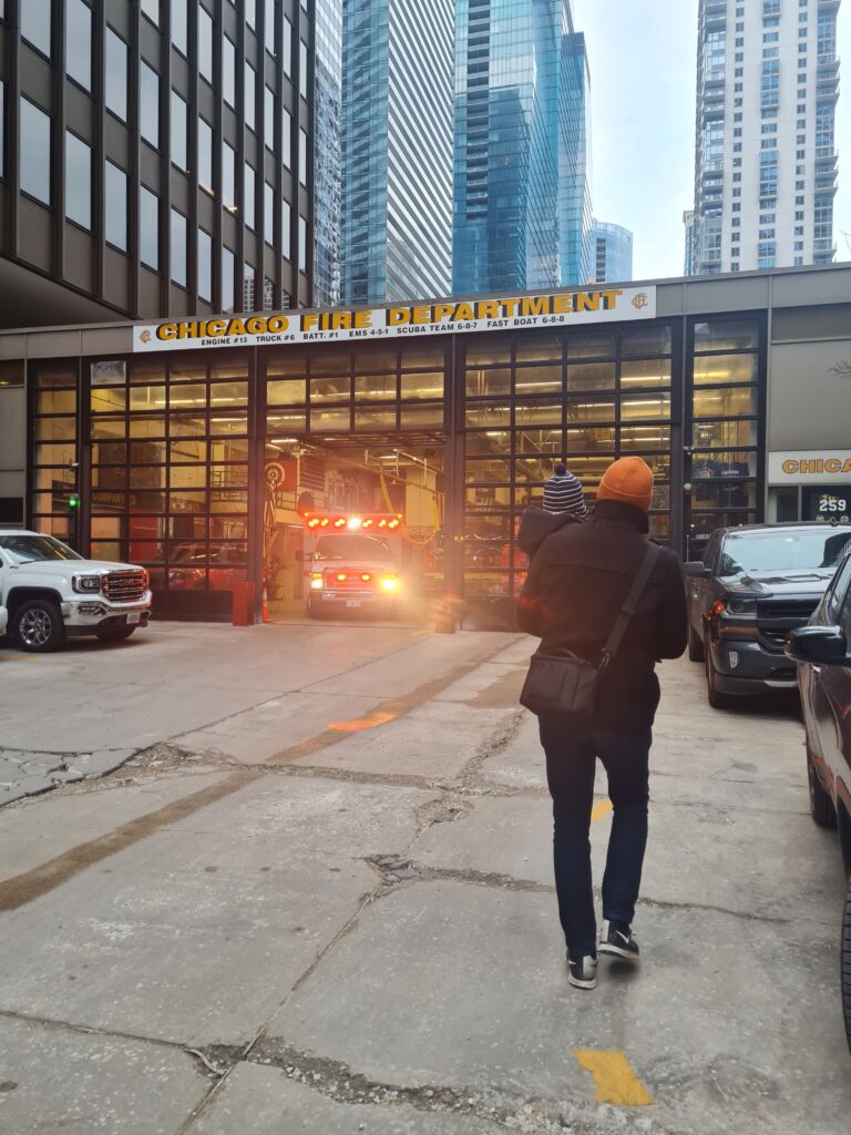 Vidar fick sedan välja om han ville gå till lekplatsen eller brandstationen. Han valde brandstationen. Vi hade gått förbi brandstationen en av de andra dagarna och blev då till vår förvåning insläppta. Vidar hade dock precis vaknat och hade ont i munnen så han var inte särskilt glad eller på bra humör när vi var där. En brandman, med väldigt avlägsen anknytning till Sverige, visade oss dock runt och sa vi fick komma tillbaka när Vidar mådde bättre. Vi tänkte därför att vi kunde gå förbi en gång till för att i alla fall titta in. Vi blev insläppta även denna gång. Vi fick hoppa in i brandbilen och när vi satt där sa de att de behövde gå och lämnade bara oss sittande där. Plötsligt dök brandmannen från vårt förra besök upp och blev väldigt glad över att vi var tillbaka. Han lät Vidar testa hjälmen och brandsprutan. Vidar pumpade för glatta livet och levde sin dröm. Vi fick även hoppa in i den andra brandbilen. När vi satt där med varsin hjälm och med radioutrustning på oss gick larmet. Det var dock inte brandbilen utan ambulansen som skulle iväg. Med sirener och blåljus körde den ut från stationen och vinkade glatt på oss. Det var en häftig upplevelse som Vidar fortfarande pratar om och hela dagen gick vi sen och letade efter ambulansen som körde iväg på utryckning.
