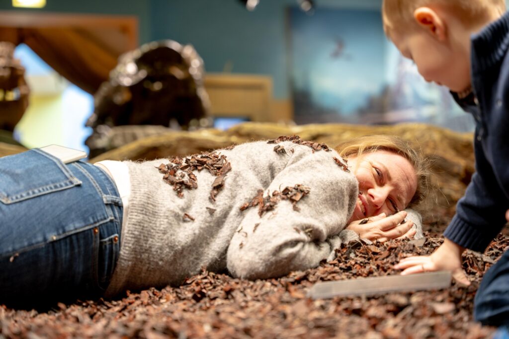 På dinosaurieavdelningen där man skulle gräva efter benrester tog en tuff natt ut sig och jag lade mig ner en stund för att vila. Jag måste sett riktigt risig ut för plötsligt började ett barn gräva fram mig på samma sätt som han grävde fram benresterna. Barnets mamma var dock förstående och poängterade att mammor tar de chanser som dyker upp att vila.