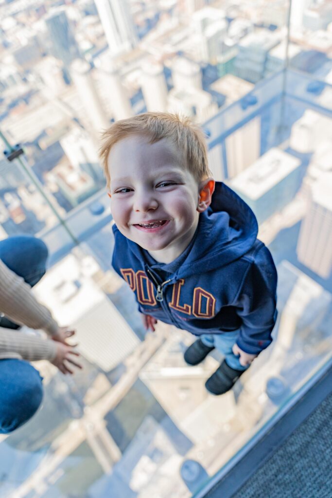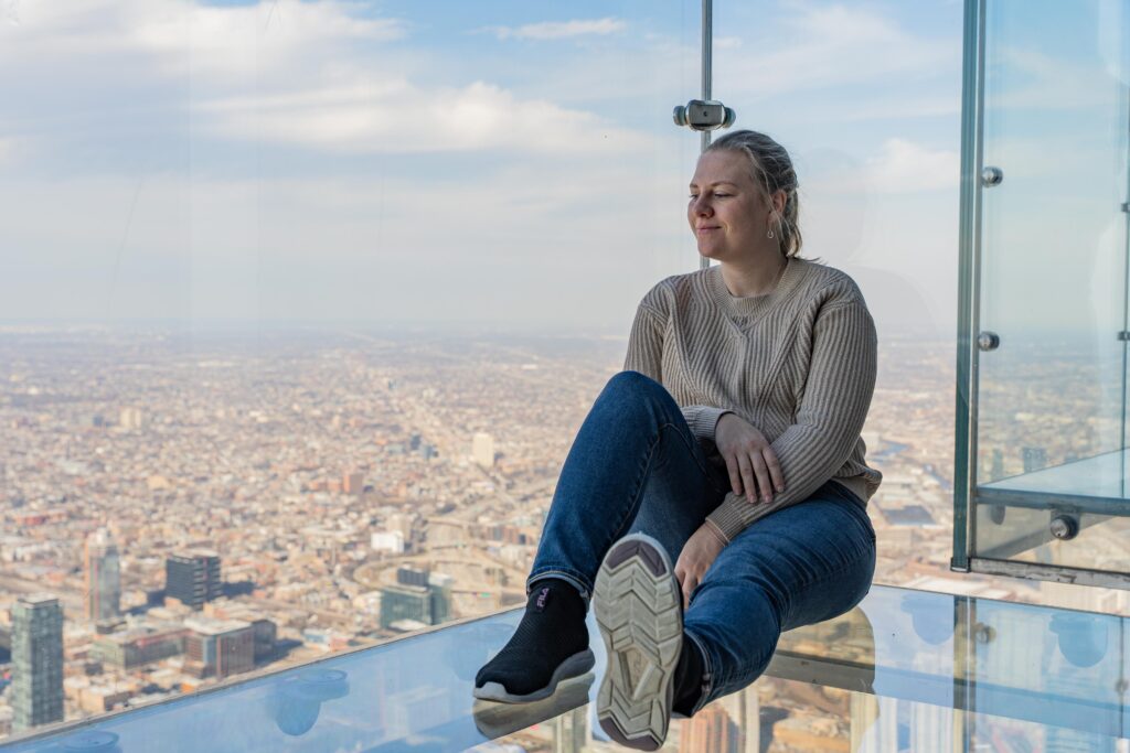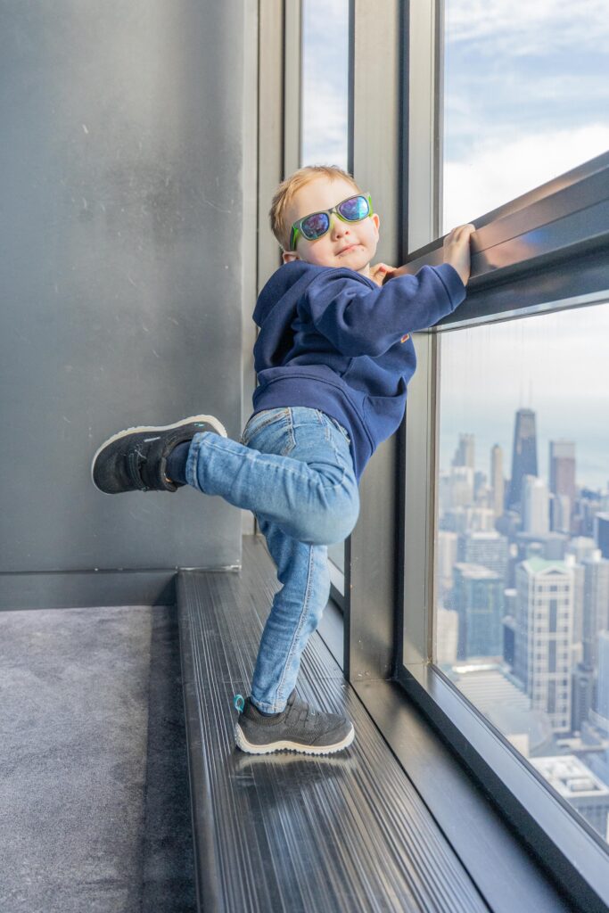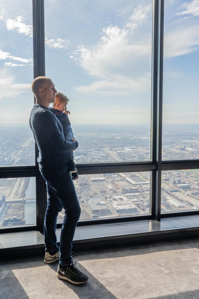 Nästa stopp var Willys Tower, Chicagos högsta byggnad och USA:s näst högsta. Vägen mot hissen gick längs ett litet museum om Chicago. Vidars favorit var nog att se sig själv dubblerad ovanpå en Deep Dish Pizza!