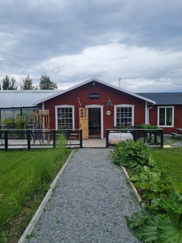 Ett sista försök var jag villig att ge gårdsbutikerna i Norrland. Kvarnå trädgård utanför Junsele var den som jag skulle ge ett sista försök. Och äntligen hittade jag något som kunde leverera! Färskt bröd och kakor, nyplockade tomater, grönsaker och hemmagjorda marmelader. En marmelad och lite tomater fick följa med innan jag körde sista biten in i Junsele för att möte upp Andreas.