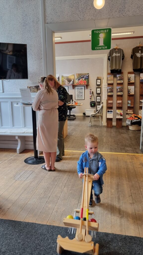 Sen eftermiddag nådde vi Vilhemina. Den by som skulle bli vår start längs Vildmarksvägen. Vi hann in om turistbyrån innan den stängde och fick ta del av massor av tips på stopp längs vägen.