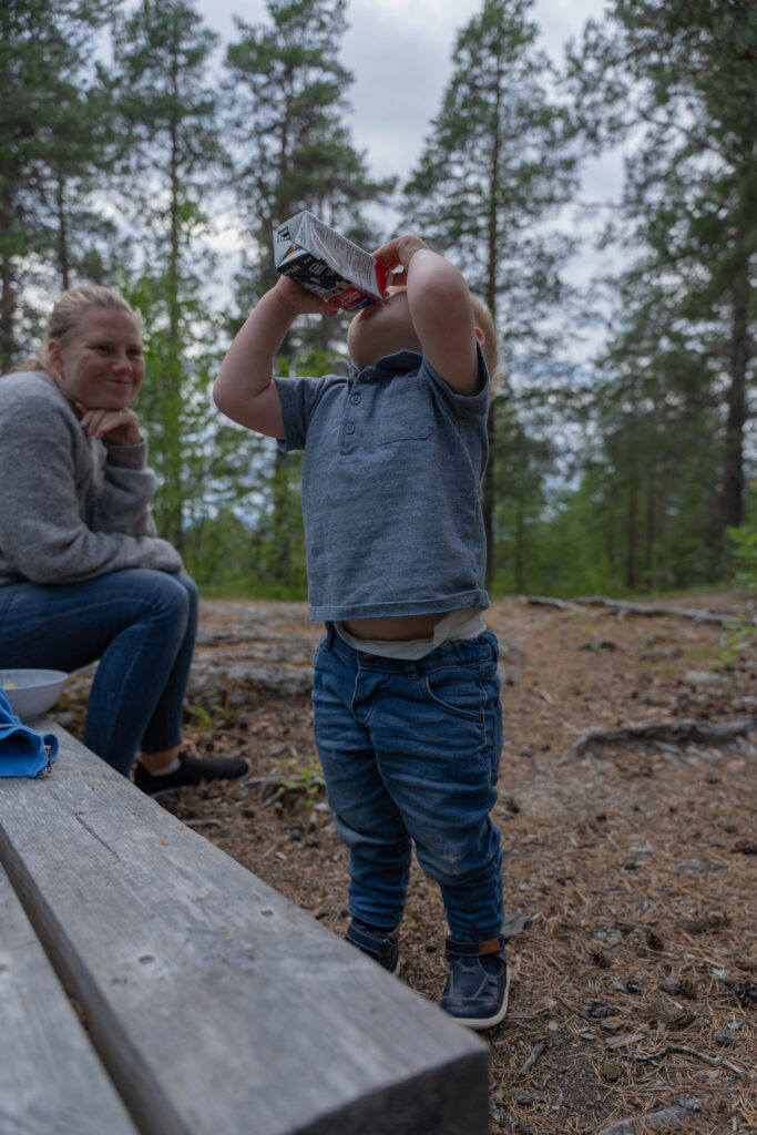 Vi kastade oss rakt på första tipset direkt. Sagostigen i Vilhemina. Vi parkerade vid kyrkan och Vidar och Andreas gav sig iväg direkt medan jag fixade lite middag till Vidar i bilen innan jag sprang ikapp dem. Vi upplevde inte riktigt att sagostigen levde upp till förväntningarna men vi fick en mysig promenad och vidar fick god pasta i skogen. På vägen tillbaka till bilen hamnade vi mitt i en mygginvasion och fick springa tillbaka till husbilen. Vi lämnade därefter Vilhemina och började nästa del av vår resa, Vildmarksvägen.